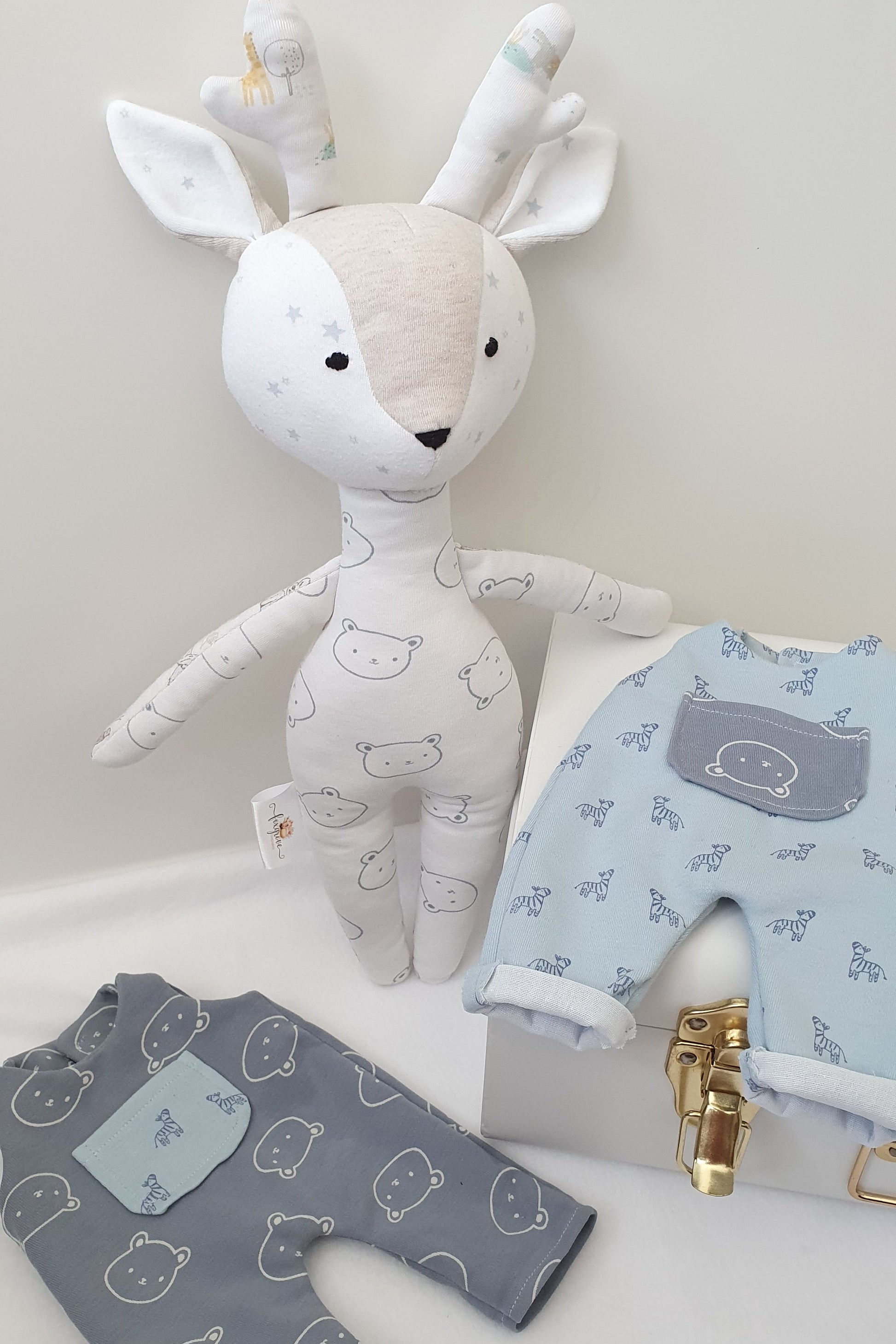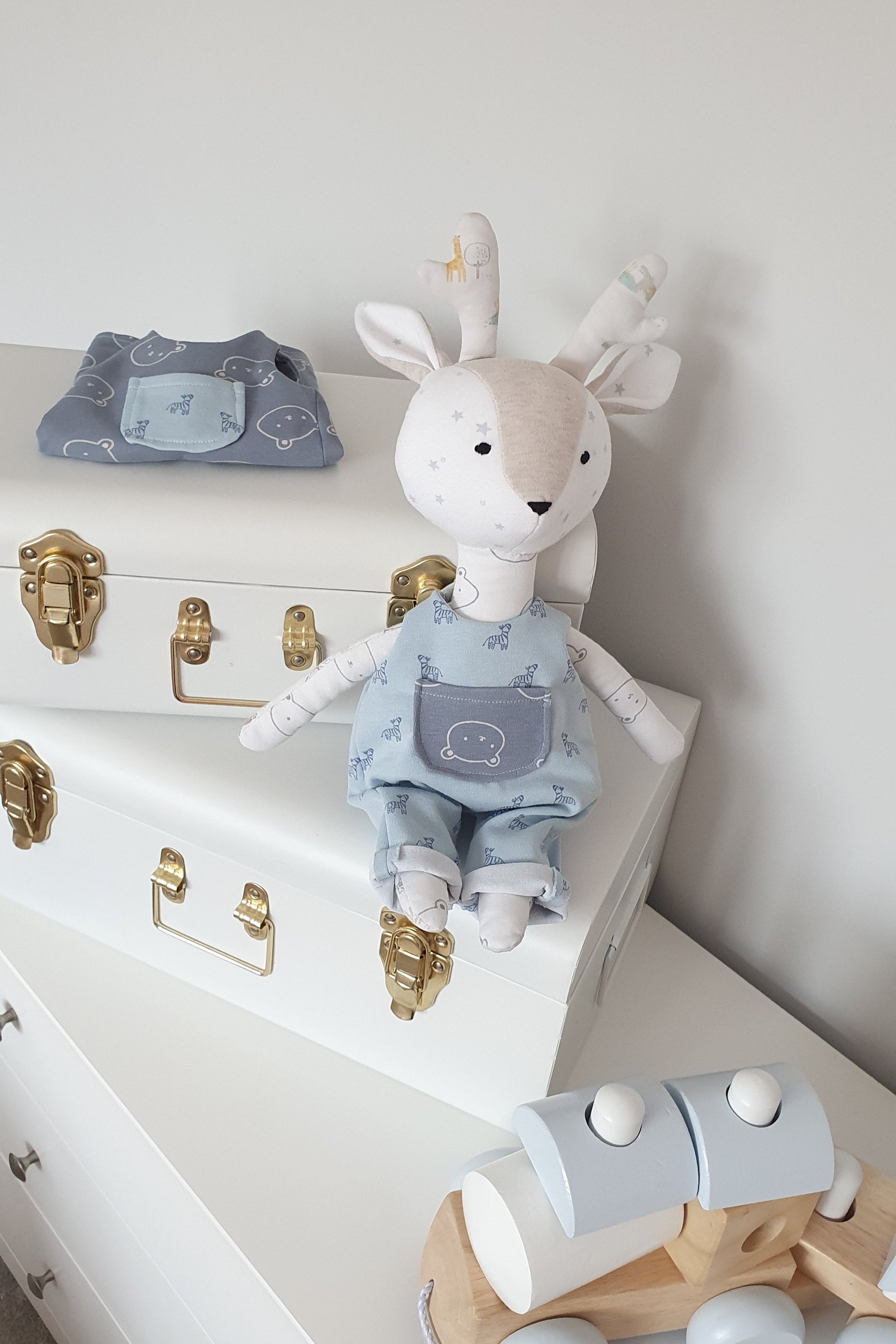 The Little Buck Keepsake Doll – our charming Keepsake Memory Deer, specially designed for little boys. Crafted from your most cherished clothes, Little Buck is dressed in an adorable dungaree outfit, making him the perfect way to preserve those early memories. This keepsake fawn captures the spirit of your little one’s first adventures, offering a timeless reminder of their precious early days. Soft, cuddly, and full of character, Little Buck is more than just a keepsake – he’s a forever friend.